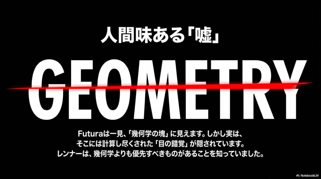 Futuraは一見すると純粋な幾何学の集合体に見えますよね。でも実は、その裏には「目の錯覚」を計算し尽くした、人間臭い調整が隠されているんです。