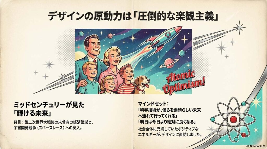 結論から言います。 1950年代のアメリカにおけるデザインの原動力は、「圧倒的な楽観主義」です。