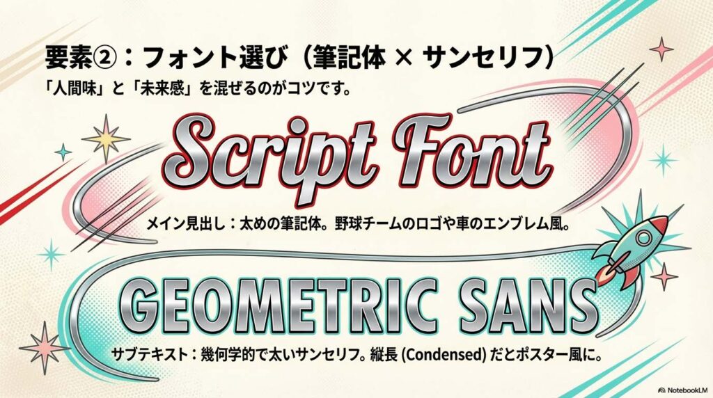 ② フォント選び(筆記体 × サンセリフ)