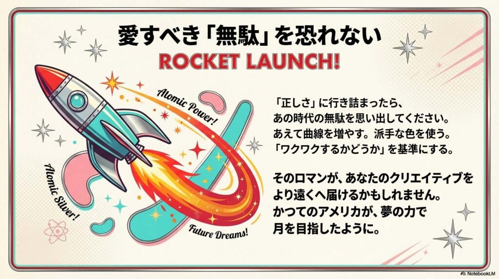 もし、あなたのデザインや資料作成で「正しさ」に行き詰まったら。 少しだけ、あの時代の「愛すべき無駄」を思い出してみてください。