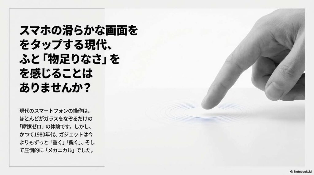 現代の私たちは、スマートフォンの滑らかなガラス画面をなぞる「摩擦ゼロ」の日常を謳歌しています。
