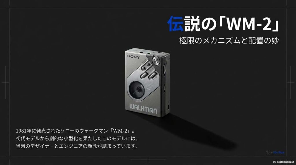 80年代メカニカルデザインの極致として語り継がれるのが、1981年に登場したソニーのウォークマン「WM-2」です。
