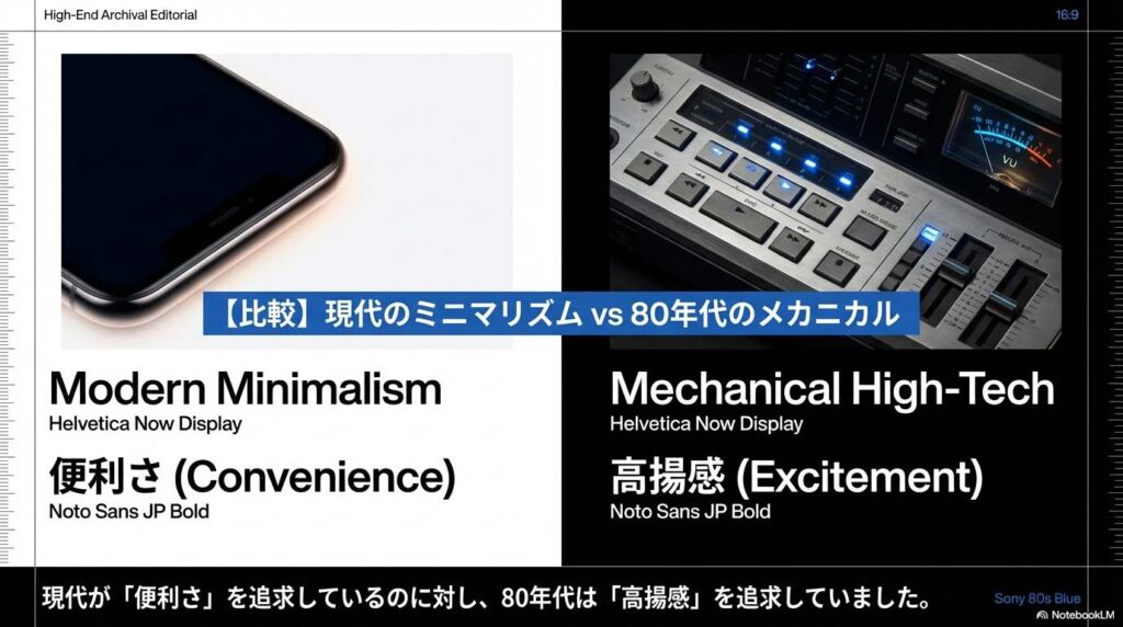 徹底比較:現代のミニマリズム vs 80年代のメカニカルデザイン