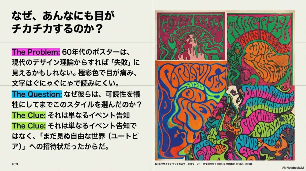 60年代のポスターが、なぜあんなにも「目がチカチカする配色」で、「ぐにゃぐにゃした文字」だったのか。